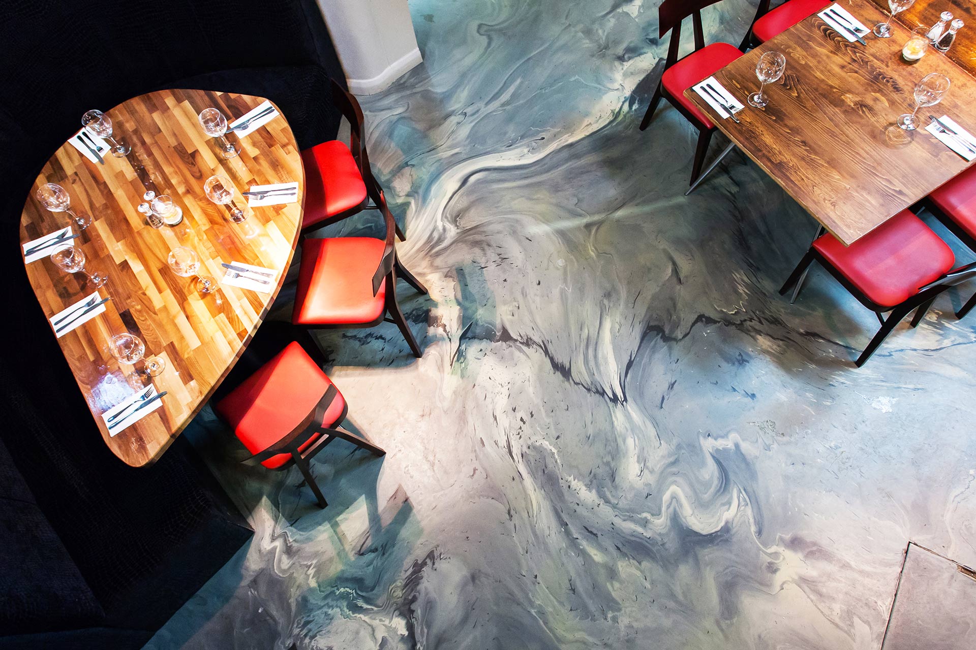 This flooring system is multi-purpose - it combines the standard features of a Sphere8 floor with the flexibility to incorporate any aesthetic design. In the past we have delivered projects with glossy gold glitter finishes, to a multi-layered ocean colour pigment build. No matter how funky or subtle your desired design - we have you covered.